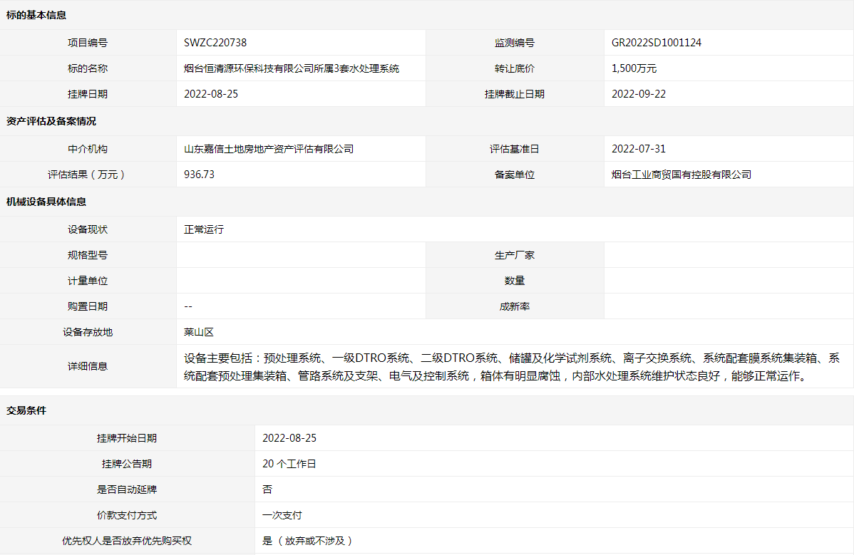 轉(zhuǎn)讓方:煙臺(tái)恒清源環(huán)保科技有限公司