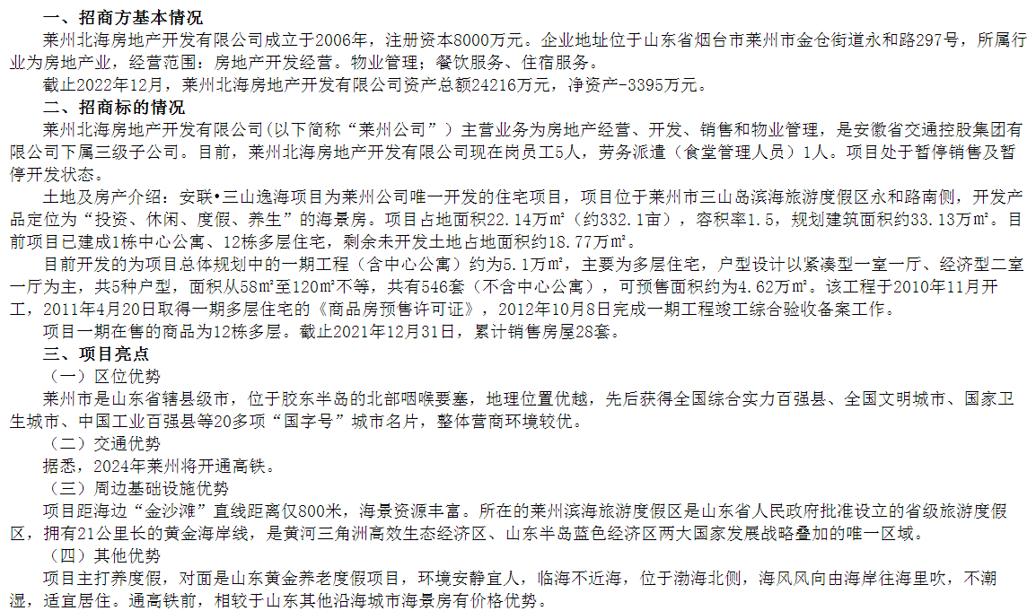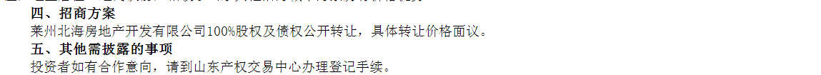 萊州北海房地產(chǎn)開發(fā)有限公司100%股權(quán)及債權(quán)