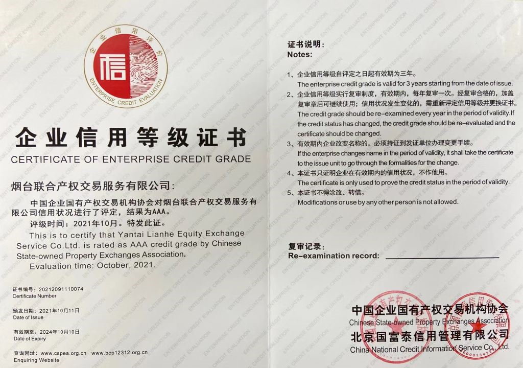 中國產(chǎn)權(quán)交易行業(yè)信用評價復(fù)審工作是由中國企業(yè)國有產(chǎn)權(quán)交易機(jī)構(gòu)協(xié)會牽頭,協(xié)同獨(dú)立第三方評價機(jī)構(gòu),對參評對象的基礎(chǔ)能力、財(cái)務(wù)指標(biāo)、管理能力、市場能力、社會責(zé)任等方面進(jìn)行綜合評估,最終經(jīng)產(chǎn)權(quán)交易行業(yè)信用評價專家委員會予以認(rèn)定后評定。本次在全國范圍內(nèi)共評選出38家AAA級信用企業(yè),其中山東省共有3家獲此殊榮,煙臺聯(lián)合產(chǎn)權(quán)是我市唯一一家獲評的企業(yè)。這既是對煙臺聯(lián)合產(chǎn)權(quán)綜合能力的認(rèn)可,也對公司進(jìn)一步提升服務(wù)能力、促進(jìn)公共資源有序流轉(zhuǎn)提出更高要求。